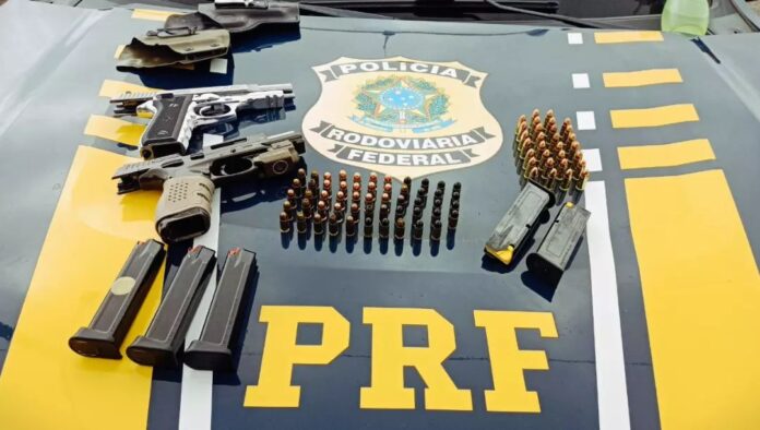 Depois de uma vistoria detalhada os policiais encontraram duas pistolas, cinco carregadores e cerca de 74 munições.
