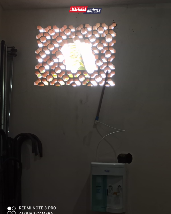 Segundo relatos do comerciante que tem um ponto comercial localizado bem na praça principal da cidade, o ladrão escalou mais de três metros de uma parede no fundo do estabelecimento para alcançar essa janela de alvenaria, que pelo lado de dentro tem mais de 2 metros de altura apra o piso, onde o mesmo teve toda a paciência para quebra-lá e depois se adentrar no interior do comércio.