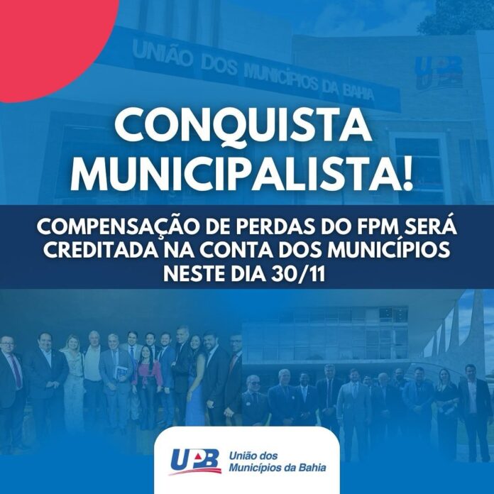 Após forte atuação da União dos Municípios da Bahia (UPB) e do Movimento Municipalista Nacional, os municípios vão receber, nesta quinta-feira (30), o repasse da recomposição para as perdas do Fundo de Participação dos Municípios (FPM). Esta é mais uma luta da entidade municipalista baiana que terminou em vitória.