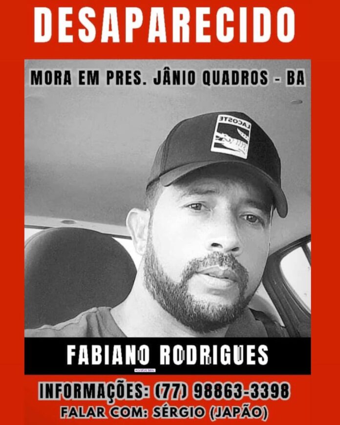 O jovem Fabiano Santos Rodrigues, de 39 anos, natural da cidade de Presidente Jânio Quadros, no sudoeste baiano, está desaparecido desde a última segunda-feira (29), e seus familiares estão desesperados em sua procura.