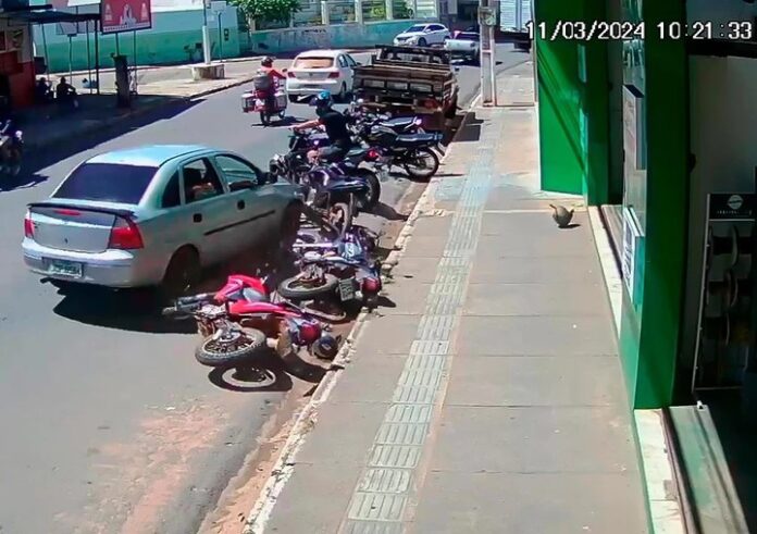 Na manhã desta segunda-feira (11), um motorista embriagado colidiu seu GM/Corsa Sedan, placa JOP6564, cor prata, contra três motocicletas estacionadas na Avenida Leônidas Cardoso, no centro de Livramento de Nossa Senhora.