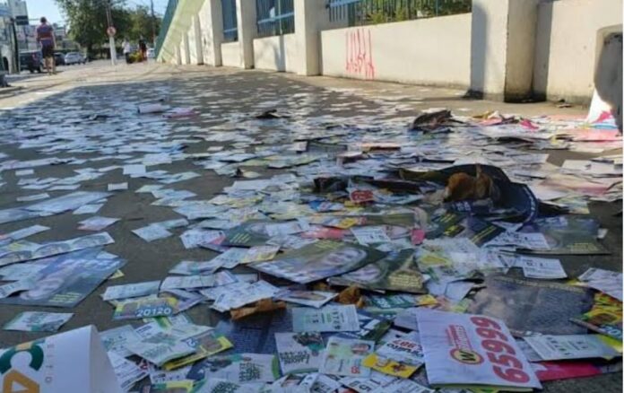 O promotor destacou que o derramamento de ‘santinhos’ antes das eleições, além de poluir, mantém ruas sujas por meses. Essa conduta pode configurar crime de boca de urna, previsto no art. 38 da Lei n° 9.504, caso ocorra no dia da eleição.