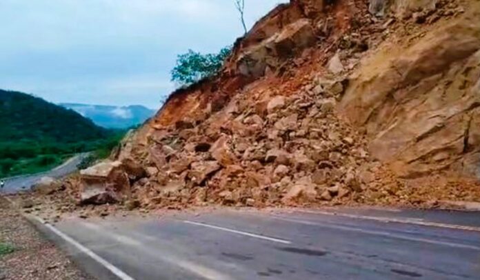 Na manhã deste domingo (24), um deslizamento de pedras interditou um trecho da BA-245, próximo ao distrito de Mocambo, em Ibitiara, na Chapada Diamantina.