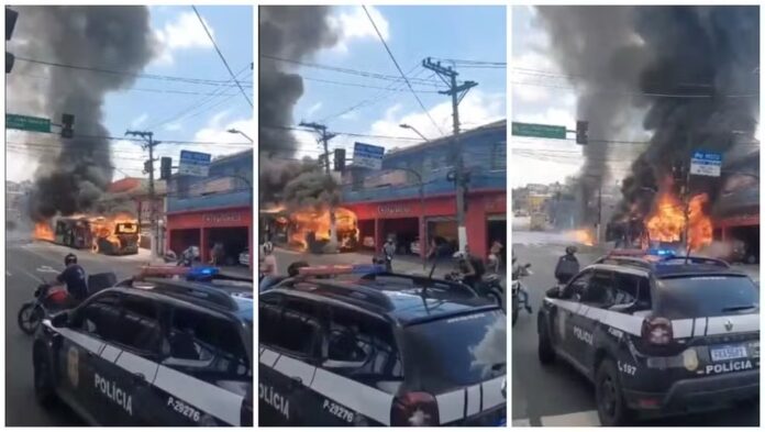 Um ônibus pegou fogo e bateu em um poste no bairro do Grajaú, na Zona Sul de São Paulo. O caso aconteceu na manhã desta segunda-feira (25). Na hora do acidente não tinha ninguém dentro do ônibus. O veículo pegou fogo devido uma pane elétrica.