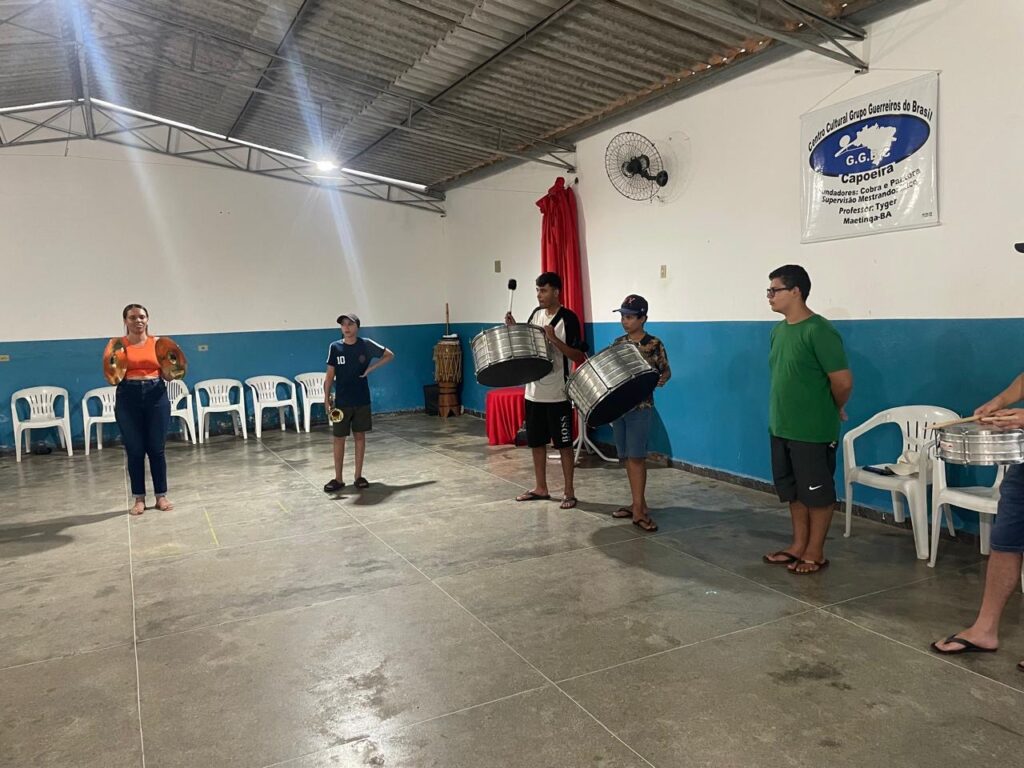A Prefeitura Municipal de Maetinga realizou, neste sábado (22), a primeira aula do Projeto Fanfarra Municipal, iniciativa que busca fortalecer a cultura local, ampliar oportunidades para crianças e adolescentes e incentivar a formação musical no município. A atividade, realizada no Projeto ERA, reuniu jovens interessados em aprender instrumentos de percussão e participar da fanfarra oficial da cidade.