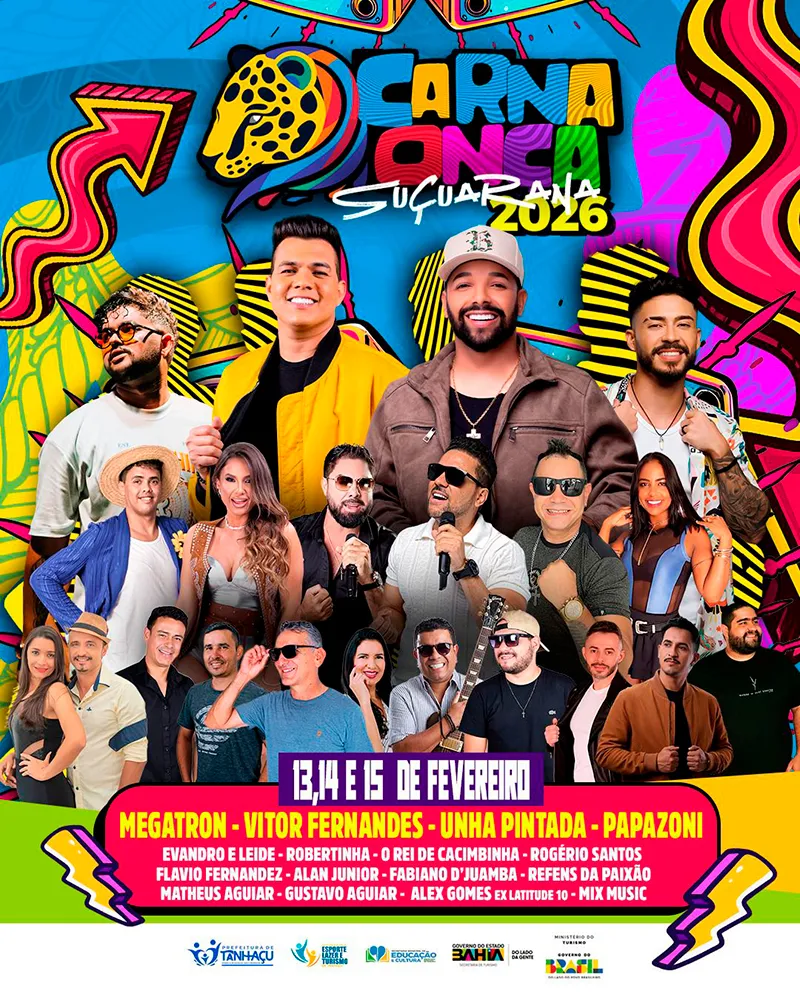 O Carnaonça 2026 é promovido pela Prefeitura de Tanhaçu, por meio da Secretaria de Esporte, Lazer e Turismo, com apoio do Governo do Estado da Bahia, através da Superintendência de Fomento ao Turismo (SUFOTUR).