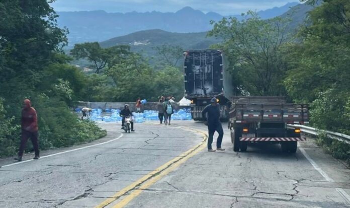 Um caminhão carregado com água mineral perdeu o controle e saiu da pista na tarde de quinta-feira (22), em um trecho da BA-148, na Serra das Almas, entre Livramento de Nossa Senhora e Rio de Contas, na Chapada Diamantina.